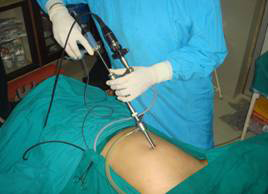 Through a single 1cm. intra-umbilical Incision an operating scope with a 5mm. channel is used. The Instruments go in through the 5mm channel. Hence no extra ports are required like in conventional Laparoscopic surgery.